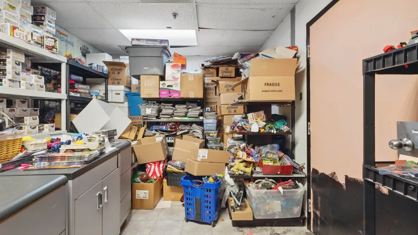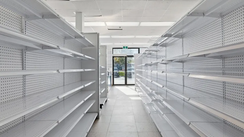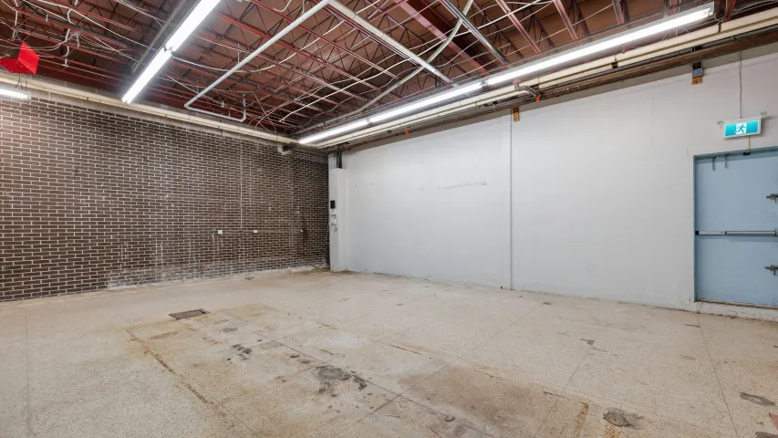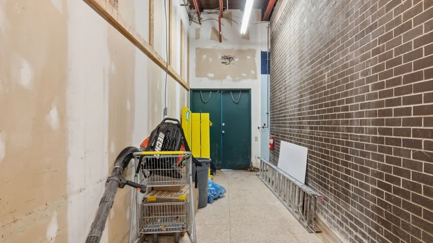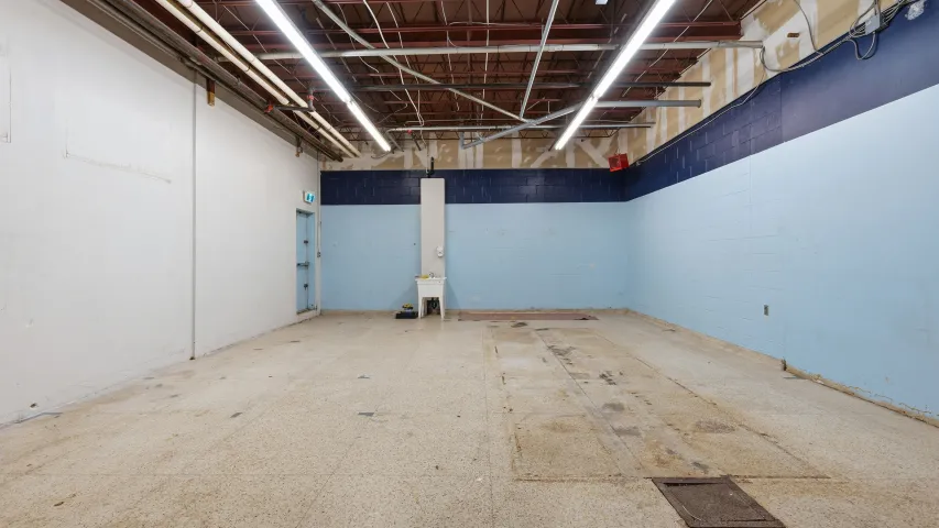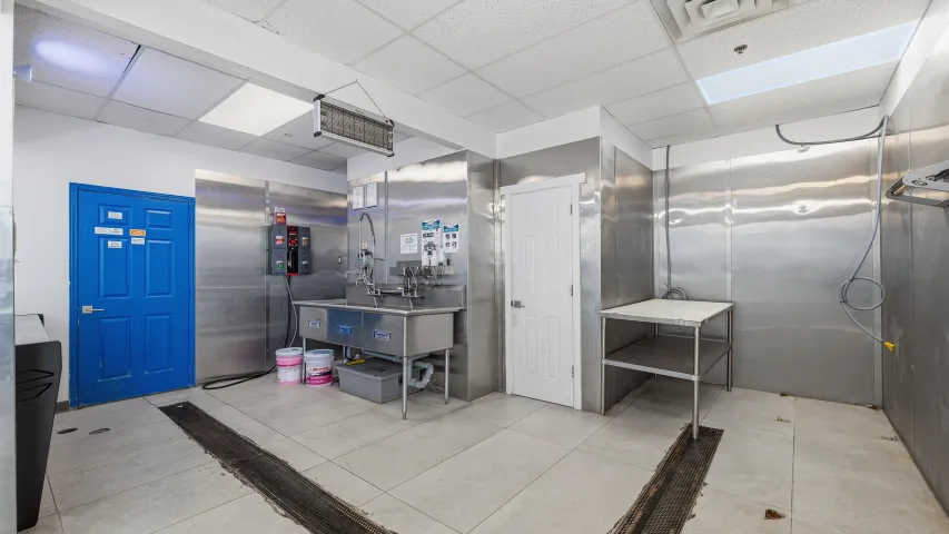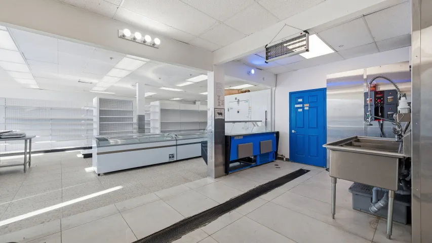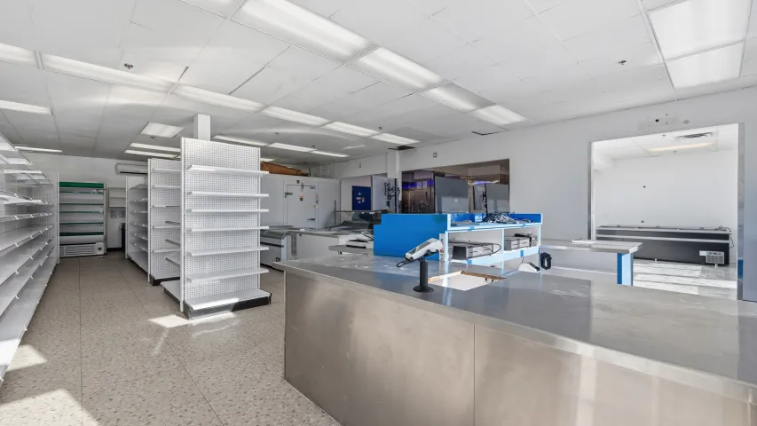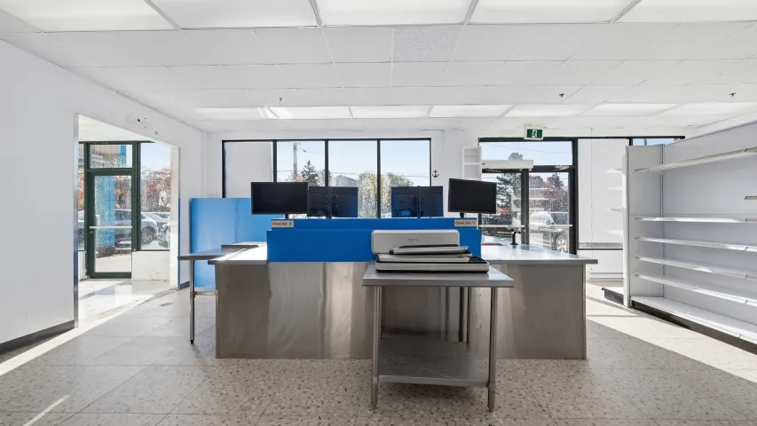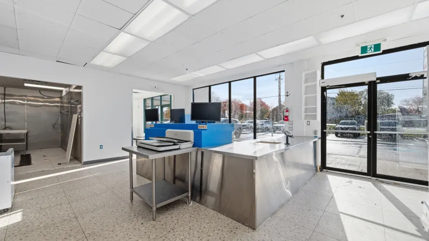 - Configured with a built-in front counter, rear prep kitchen, and washroom