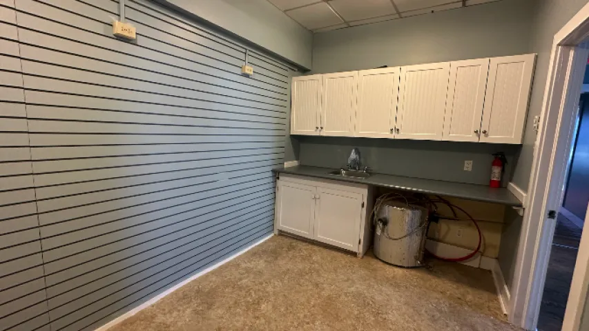 The main floor boasts a spacious 1,400 sq. ft. commercial unit with large street-facing windows, an open retail/ reception area, multiple private offices, a kitchenette, and a washroom. Currently vacant, it’s a blank canvas for your vision. Adjacent to this, a 700 sq. ft. commercial space— accessed from Gorham Street—is leased to a stained glass studio, providing immediate rental income. Additionally, a separate 700 sq. ft. storage area with a washroom could be transformed into a third commercial space with reconfiguration and the addition of a storefront entrance.