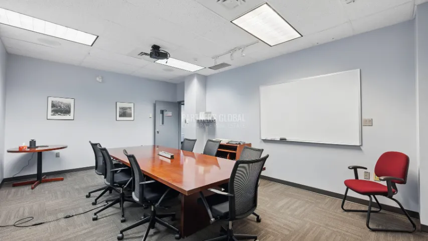 The location is currently configured as a telecommunications space. Located on the second floor, the office comes fully furnished and is a turnkey opportunity. The build-out comes with a private security system with restricted access in the building, utilizing a key fob system to ensure exclusive entry for the tenant. The layout features multiple private offices, a spacious conference room, secure data rooms, smaller meeting rooms, a well-appointed kitchen, and washroom facilities. The space is ready to support a dynamic and professional work environment.